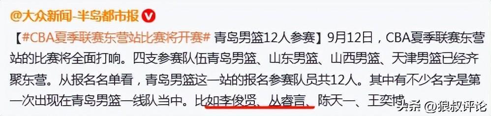 外界一度重点关注两大潜力新星李俊贤、丛睿言已经确定加入青岛男篮青年队,若是各方面条件合适将会成为青岛男篮一员。